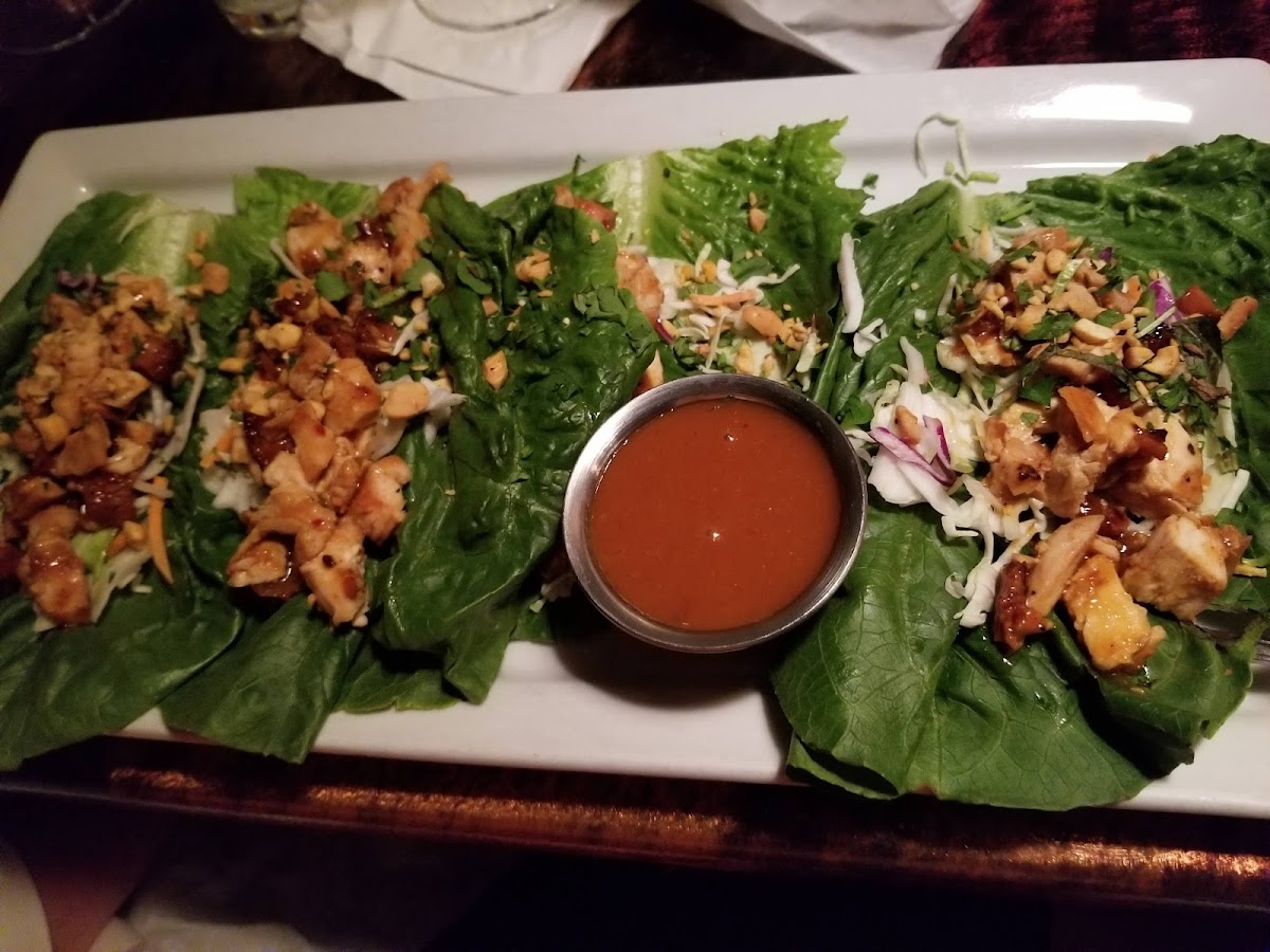 Service was excellent. We were able to have a nice lunch meeting. Our waitress was so kind when we told her we wanted to chat a bit before we ordered. She kept our drinks full while we talked. Food came out quickly and she brought us our tab quickly upon request. I got the lettuce wraps and they were FANTASTIC!